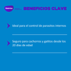 - Control Superior de Parásitos: Combate efectivamente giardias y coccidias, dos de los parásitos más comunes que afectan a los gatos y perros.